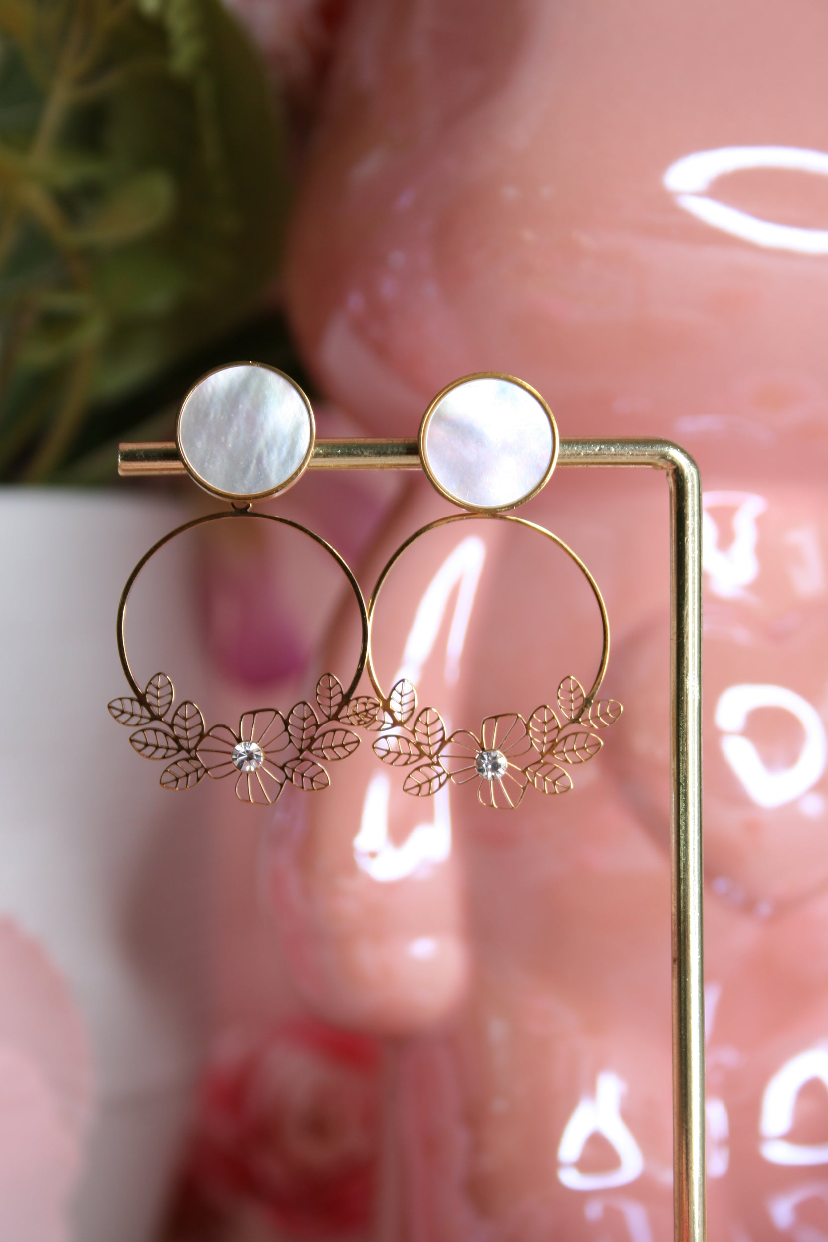 They are round, delicate, with a fine flower pendant and a small golden rhinestone that adds just the right amount of shine.