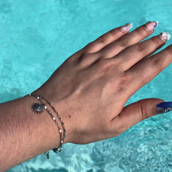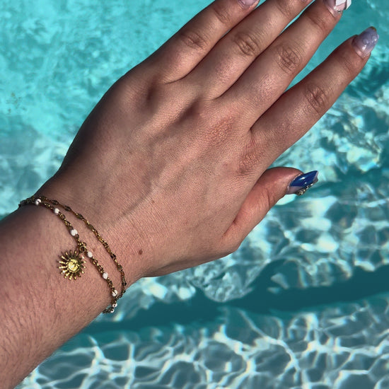 The Hope bracelet is a delicate little piece of jewelry that brings light and good humor to your everyday life. Its fine stainless steel chain is enhanced by pretty golden beads and a sun pendant that symbolizes positivity and renewal.