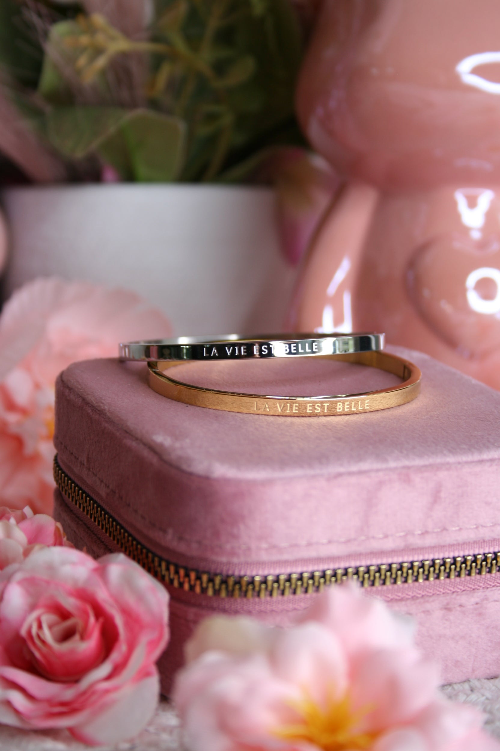 This beautiful stainless steel bangle is gently engraved with: Life is beautiful . A simple, yet powerful reminder that we love to wear every day.