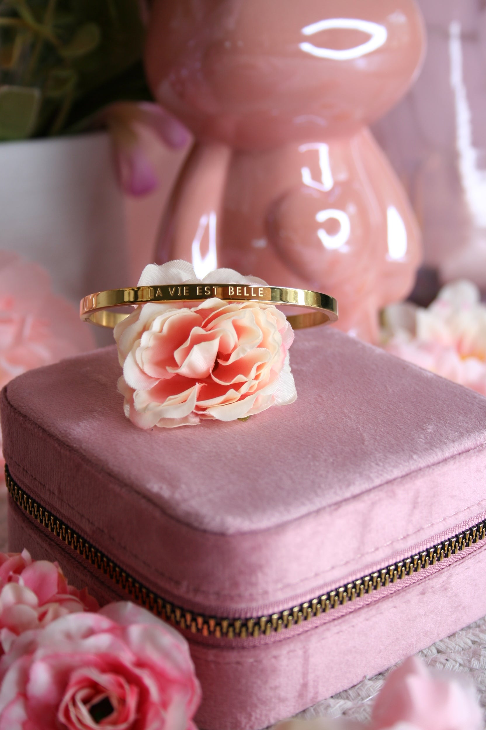 In gold or silver, it slips easily onto your wrist thanks to its discreet clip. Lightweight, elegant, and full of good vibesâit goes with everything and won't leave your side.